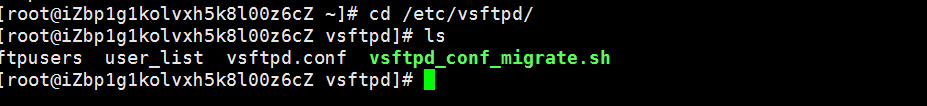 3】运行以下命令打开及查看etc/vsftpd (如下图)