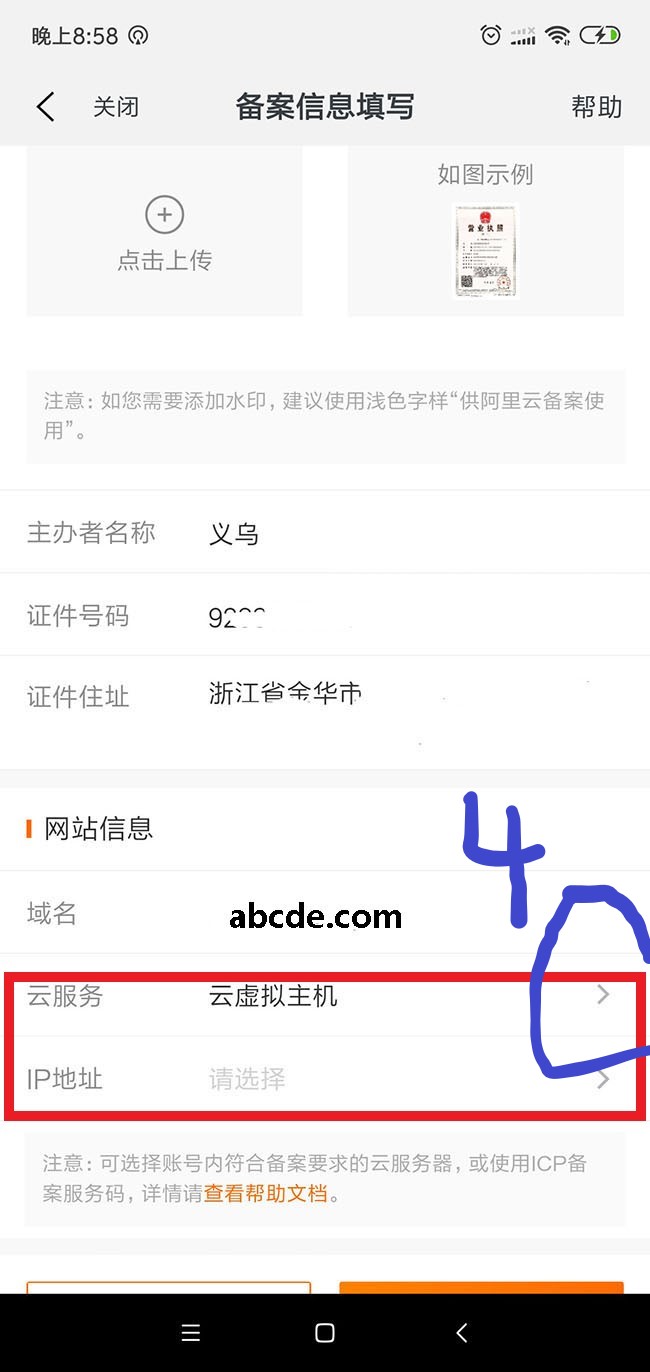 找到下图选择云产品(默认是云虚拟主机或ECS)后面的“>”选择备案服务号,然后输入服务号就可以进行备案了。如下图所示