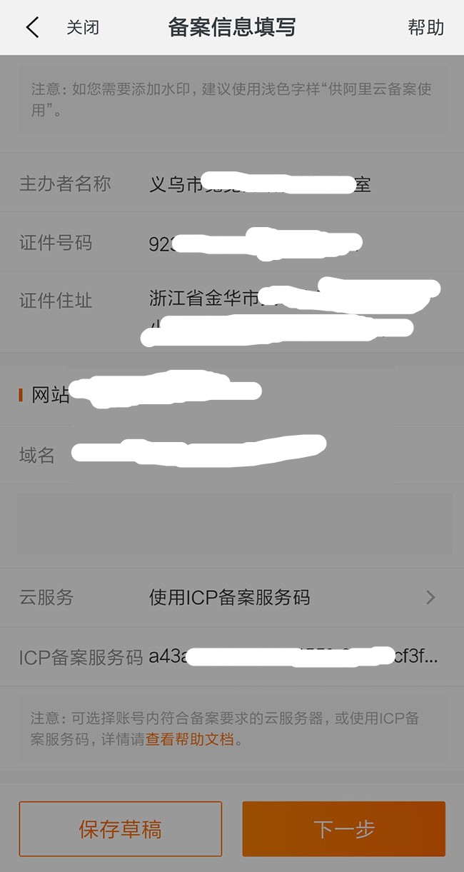 1、当您从主机平台里申请到阿里云备案服务号或从各种途径得到阿里云备案服务后