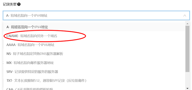 阿里云域名指向主要有两大类,一类是A记录,直接指向到主机IP,一种是CNAME指向到主机的临时域名,如下图