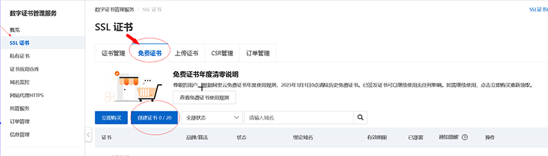 阿里云免费SSL证书概况