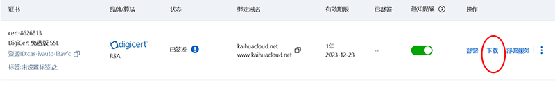 证书绑定域名:填写你的网站域名,如kaihuacloud.net