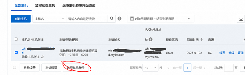 选中要转的主机,然后点击下方这个“转至其他账号”,